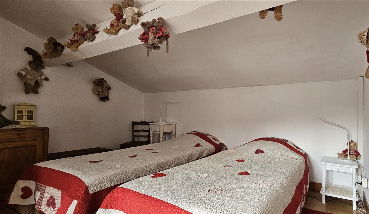 Le gîte se compose d’un espace de vie convivial avec cuisine et salon au rez-de-chaussée, ainsi que de deux chambres à l’étage, offrant confort et intimité.